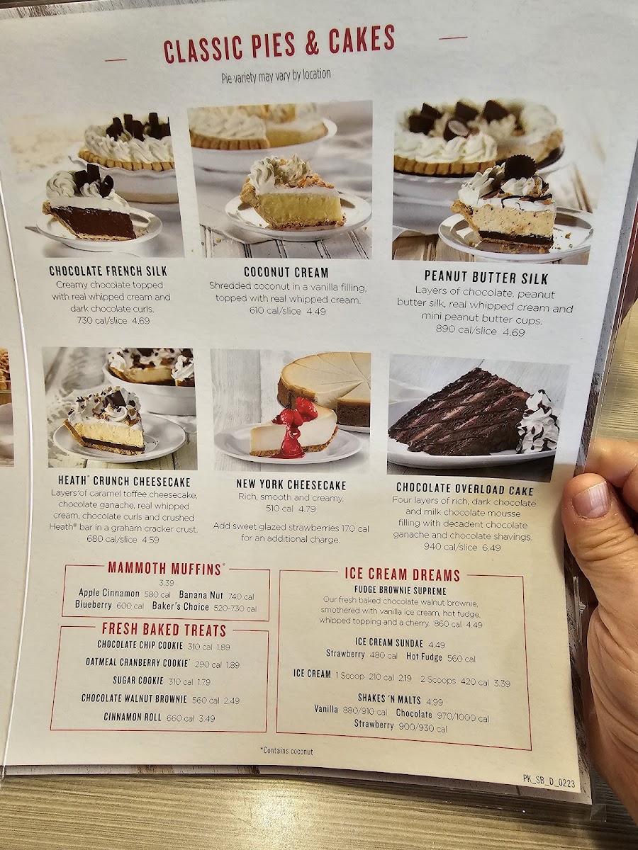 Customer Favorites: Fluffy pancakes, juicy burgers, and bakery pies.